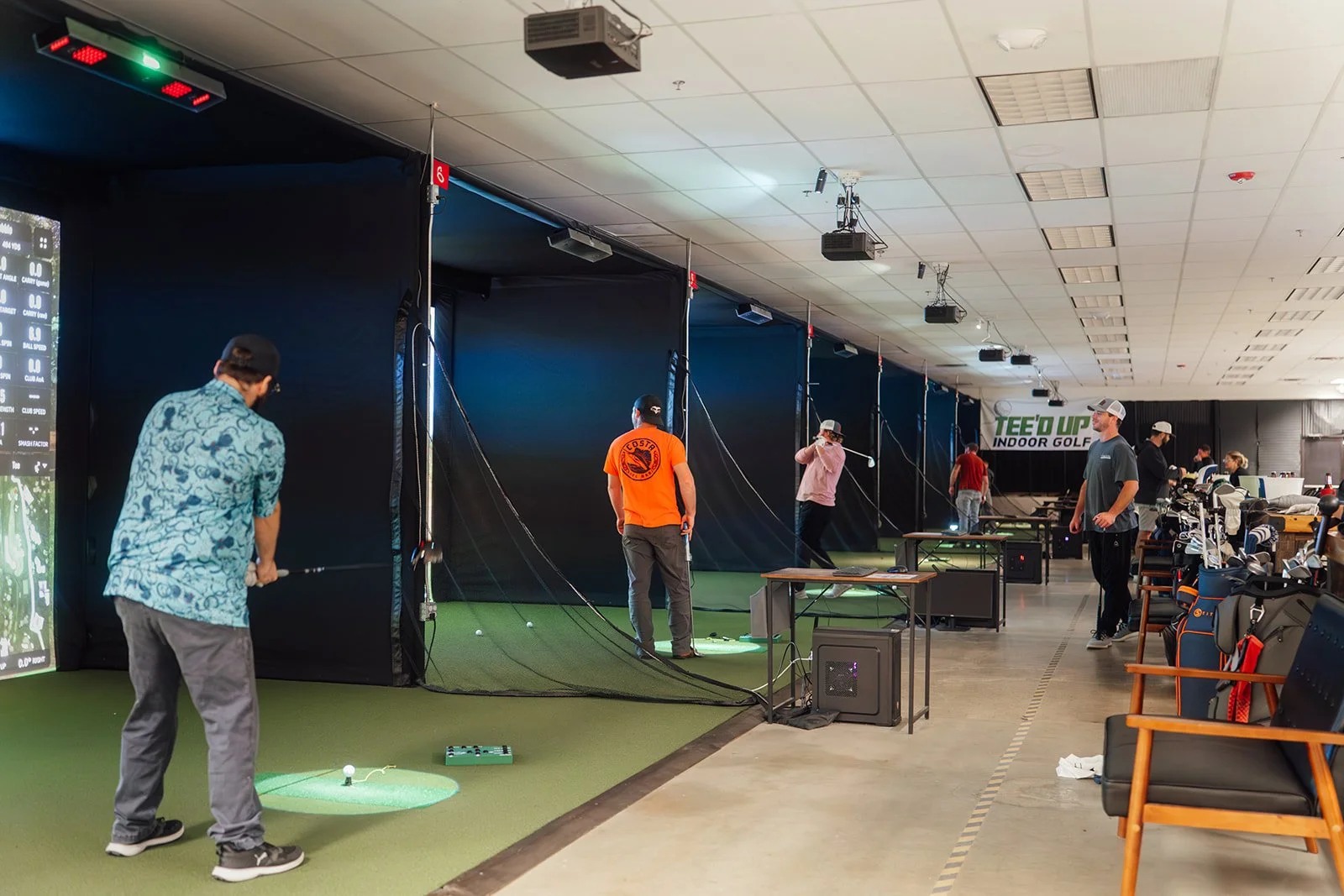 Each bay can accommodate up to six players per session. Groups larger than six will need to reserve additional bays.